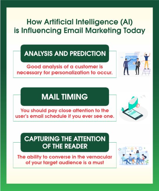 The use of artificial intelligence (AI) powered solutions has helped revolutionize the email marketing industry. Artificial intelligence is used in email marketing to boost revenue by increasing open and click-through rates. Successful email campaigns can be developed in less time with the help of AI in email marketing.